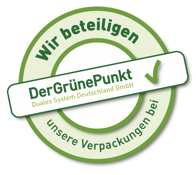 Unser Verpackungsabgaben leisten wir über "Der Grüne Punkt".